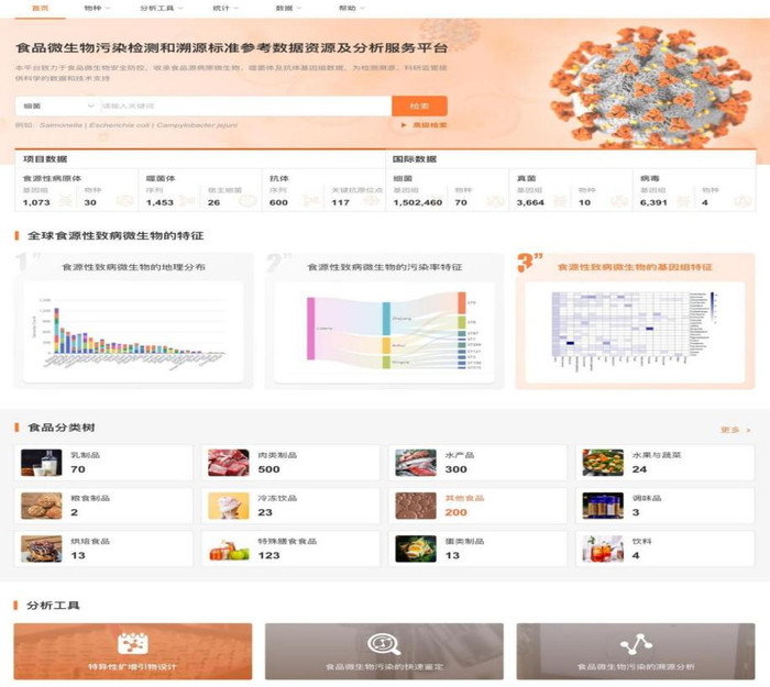 面对食品污染事件,快速找到污染源是遏制风险扩散的关键。据介绍,项目团队成功建设了覆盖度高、应用性强的食源性病原微生物数据资源体系并形成一体化在线服务平台,可对入库数据进行快速检索。目前,噬菌体资源库已收录1453株噬菌体和1073株宿主菌基因组数据,涵盖了26种常见食源性致病菌;特异性抗体资源库整合了600余条抗体序列和117个关键抗原位点,构建了国内较为完善的微生物抗体基础数据库;分型特征序列库则整合了218种微生物超2.5万条基因组数据,筛选出了2万余条稳定特征序列,为食品污染事件的分子溯源提供了有力支持。